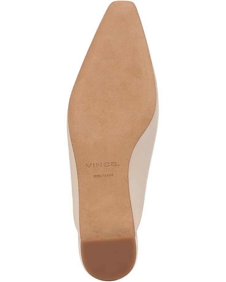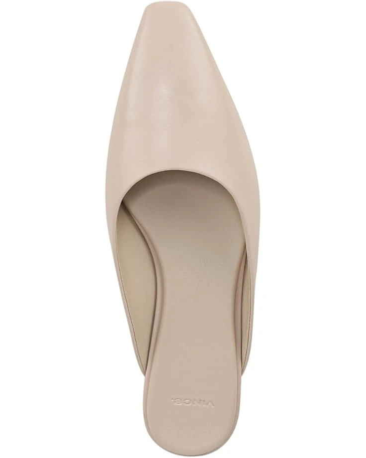 - Radiate elegance and poise with every stride and celebrate all-day comfort donning the Vince® Ana Slip-On Mules. Perfect for every event or party, these shoes feature a sharp square toe silhouette with a sleek leather upper, a breathable leather lining, and a padded footbed.
