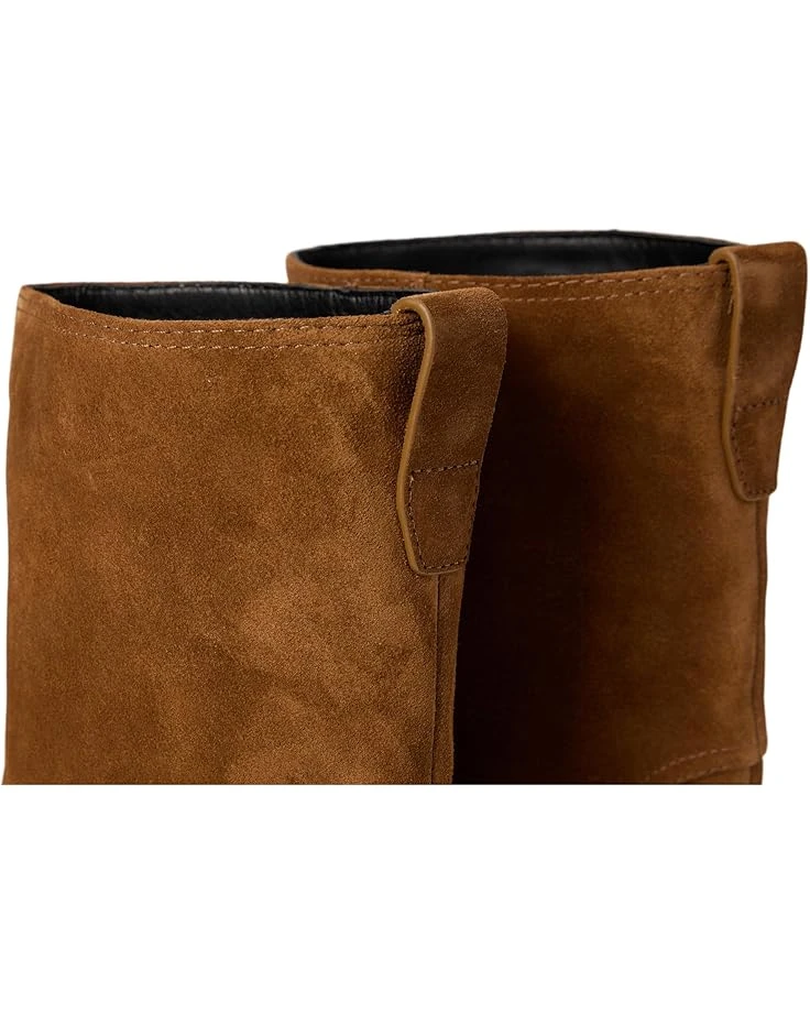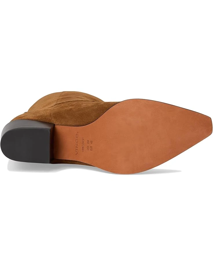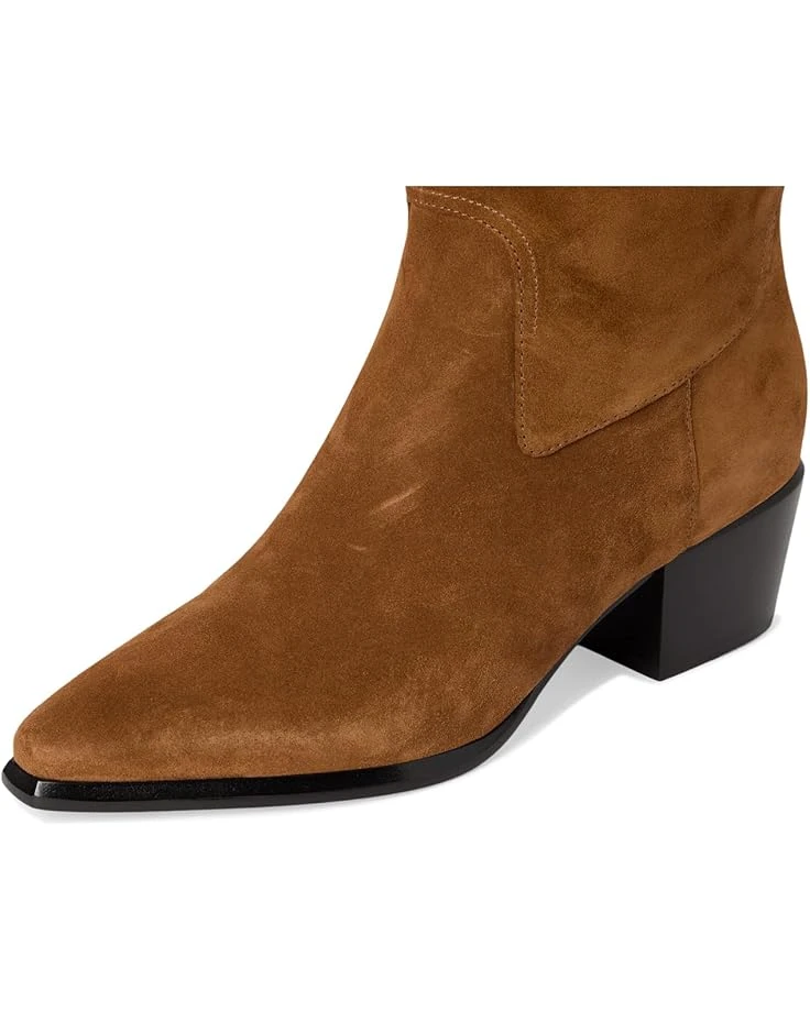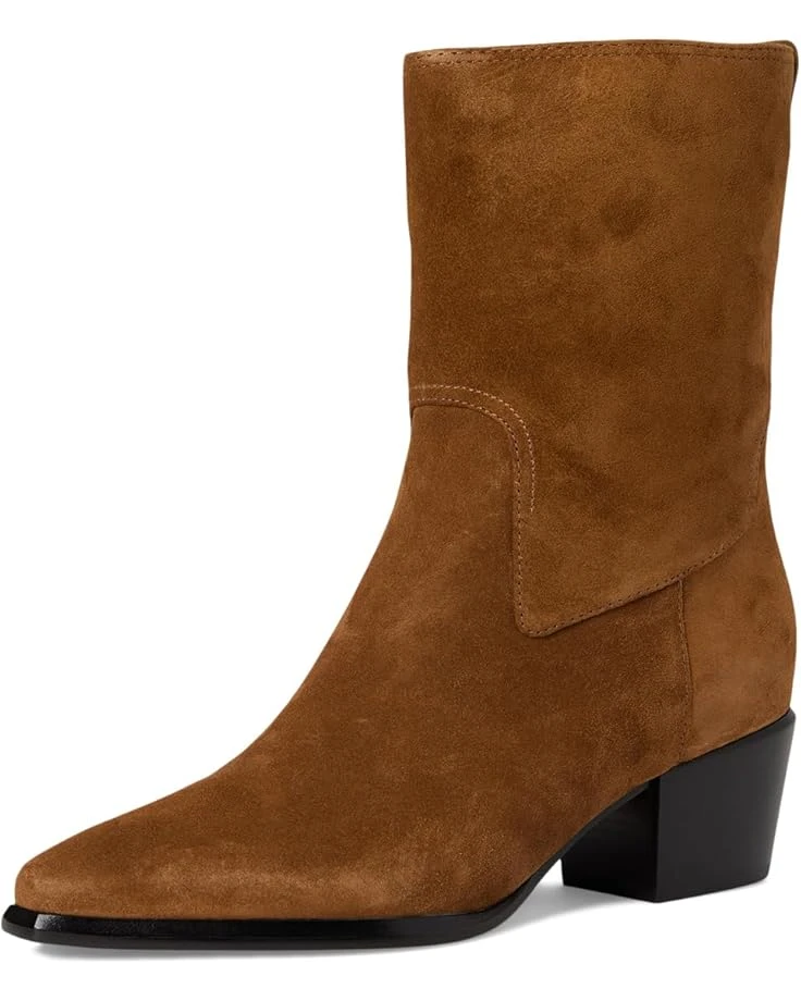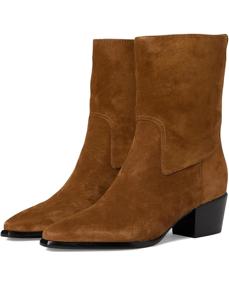 - Crafted from suede leather, the Western-inspired boot is endlessly walkable thanks to its low block heel. Crafted from leather lining and a foam insole for all-day comfort, these booties feature a pull-on style in a pointed toe silhouette and a pull tab in back for easy entry.