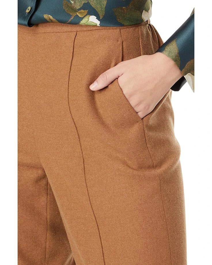 - Enjoy a cozy feel and that next-to-skin comfort throughout your busy day as you pair your style with the Vince® Brushed Wool Mid-Rise Easy Pull-On Pants. Backed with an elasticized waistband, these pants are formed in a cropped fit with a straight leg silhouette. The dual front slant pockets and back welt pockets add to their utilitarian profile.