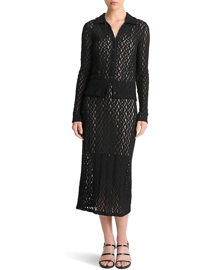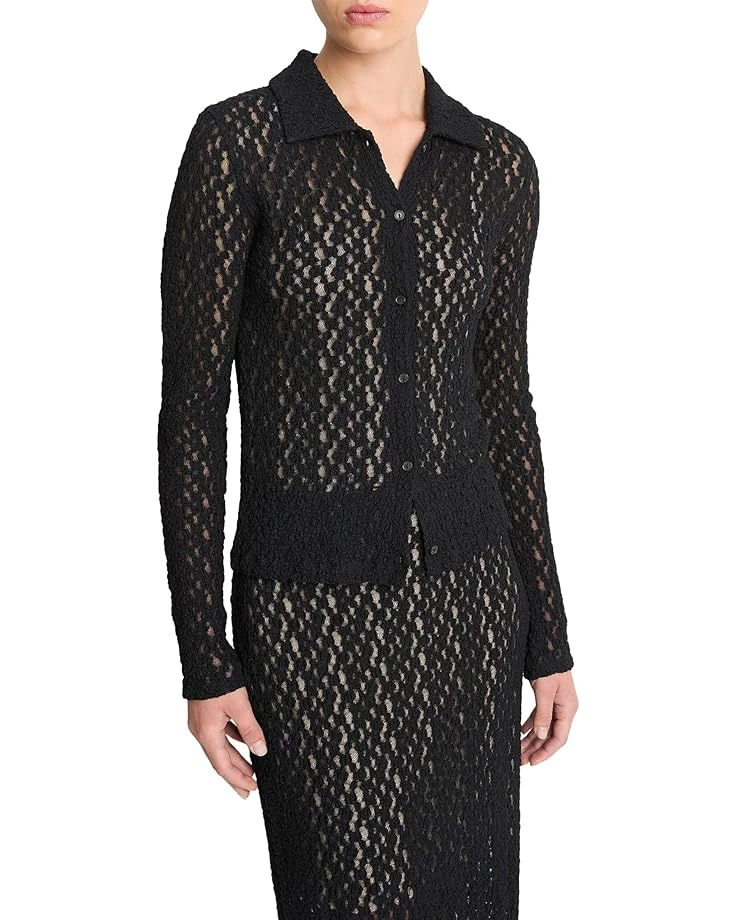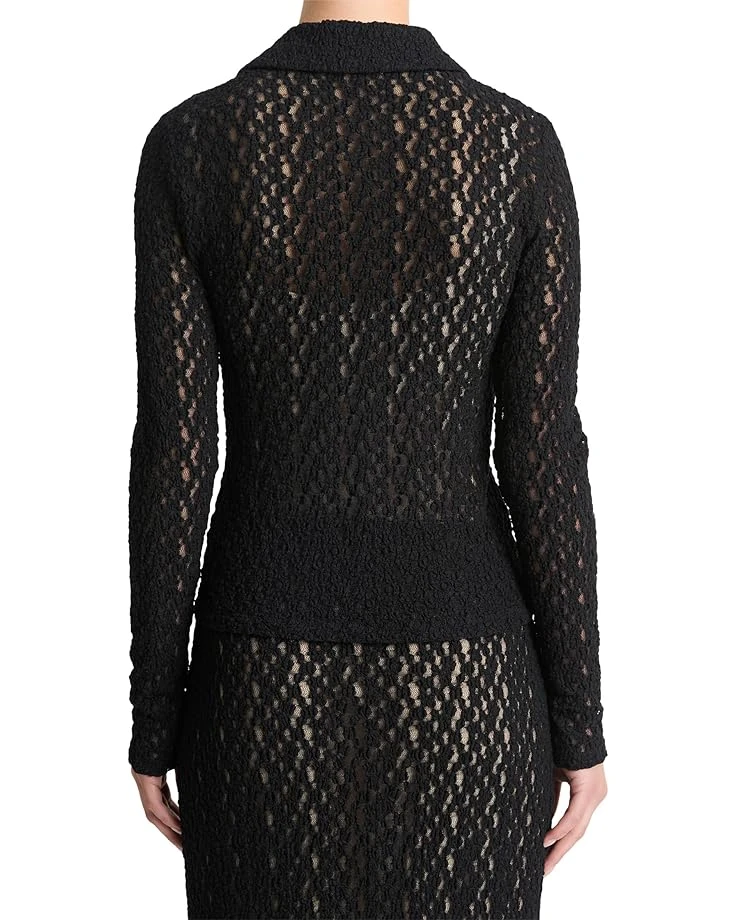 - This button down can be worn as a overshirt or on its own, it is lined and has a nice collar as well a beautiful lace detail. Featuring a spread collar with long sleeves in a fitted silhouette.