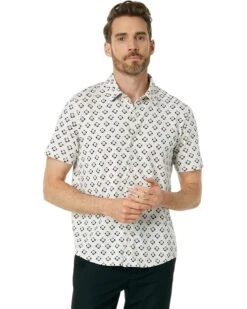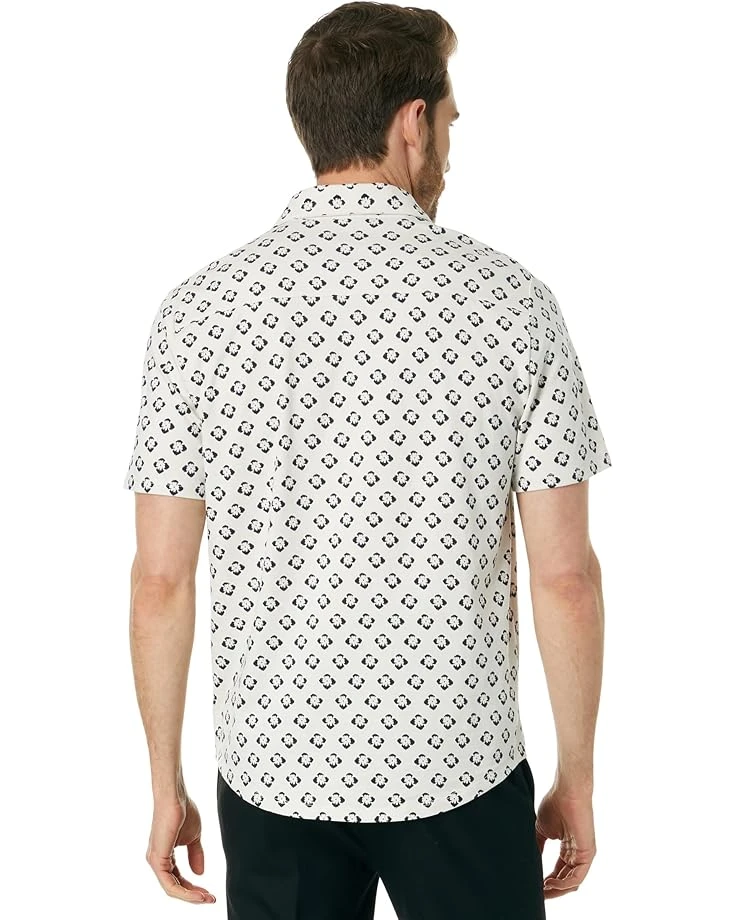 - Let the world stop and stare at you donning the Vince® Geo Floral Printed Short Sleeve Button-Down shirt.
