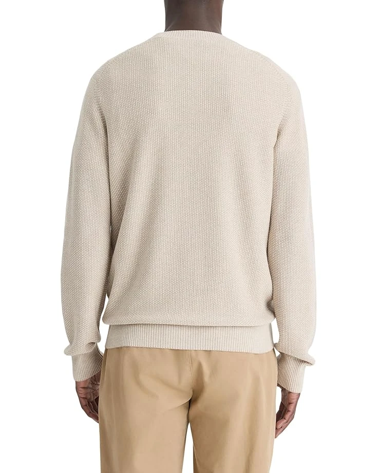 - Maintain your classic wardrobe styling this chilly weather season in the Vince® Geo Jacquard Long Sleeve Crew. This pull-on style sweater features a crew neckline with long sleeves and ribbed collar, cuffs and hemline.