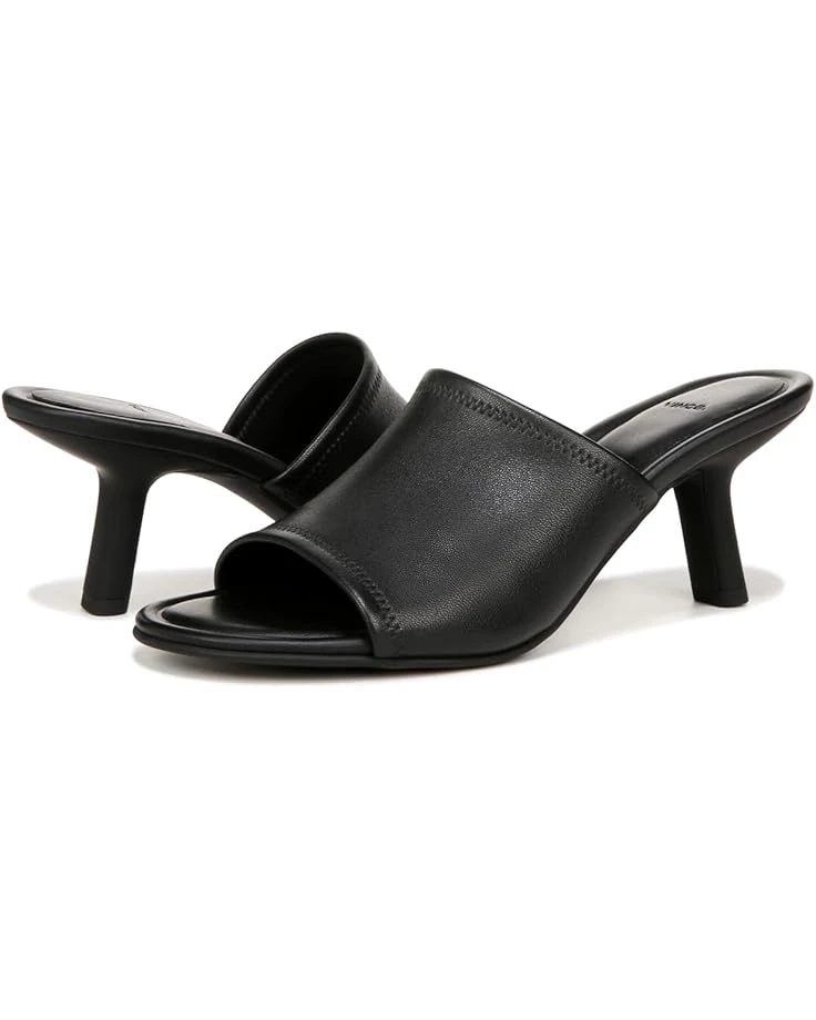 - Spruce up your minimalist fashion game by pairing up with the Vince ® Joan Open Toe Heeled Mules. Ideal for your go-to days, these slip-on shoes are crafted with sleek and buttery soft stretch leather upper coupled with breathable synthetic lining and foam-padded insole.
