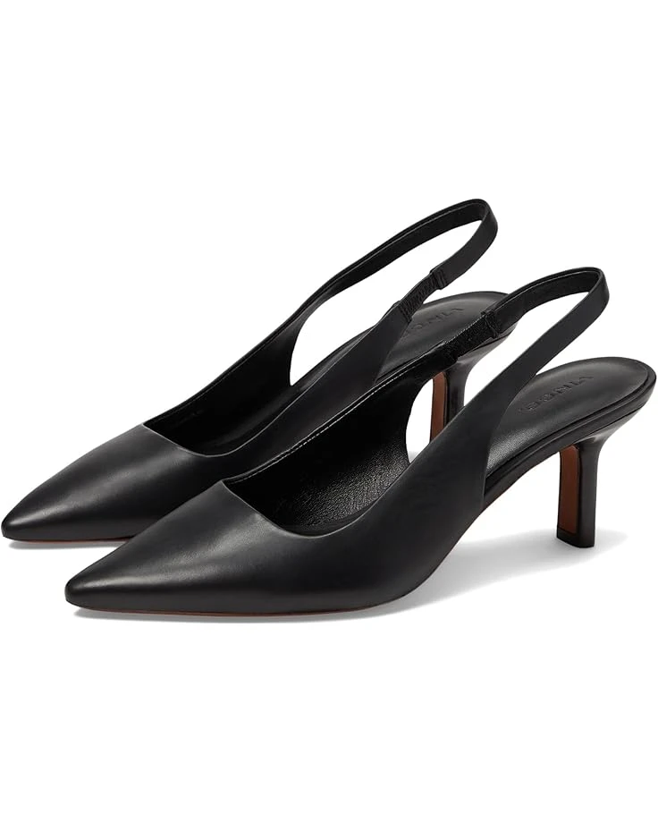 - Polished your timeless casual look donning the Vince® Patrice. These pair of heels feature elasticized sling back closure, pointed toe design, and brand name embossed on the footbed. Crafted from smooth leather.
