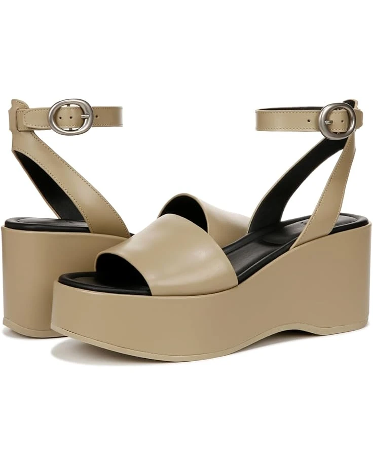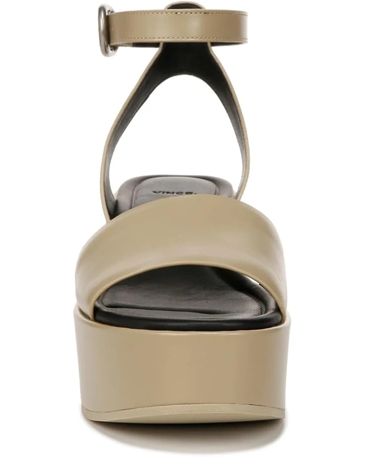 - Make a stupefying statement with every step you take wearing these Vince® Phillipa Sandals. The open almond toe pair features leather upper construction with lightweight platform heels and buckled ankle strap closure.