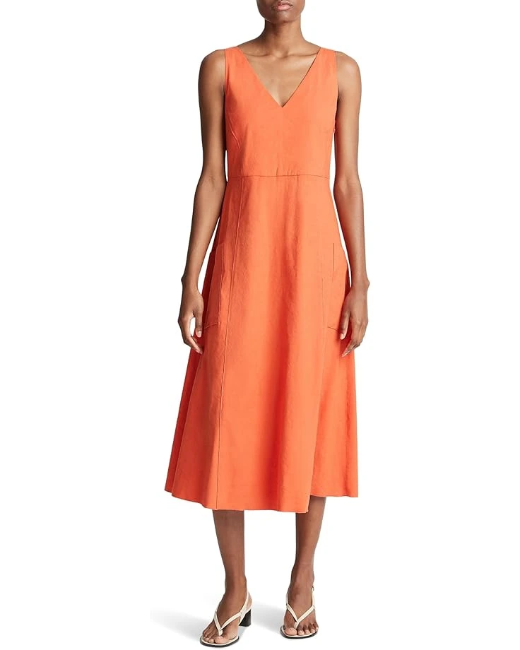 - Upgrade your wardrobe by adding to it the polished and sleek Vince® Relaxed V-Neck Pocketed Dress in a vibrant color palette. The ankle-length dress features a V-neckline, hidden side-zipper closure, sleeveless design, pockets on the front, and an A-line silhouette.